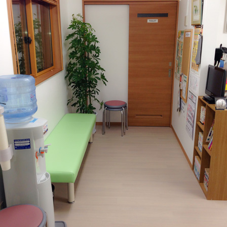 | 待合席には、ウォーターサーバーと漫画が備えてあります。 ご自由に利用ください。 |